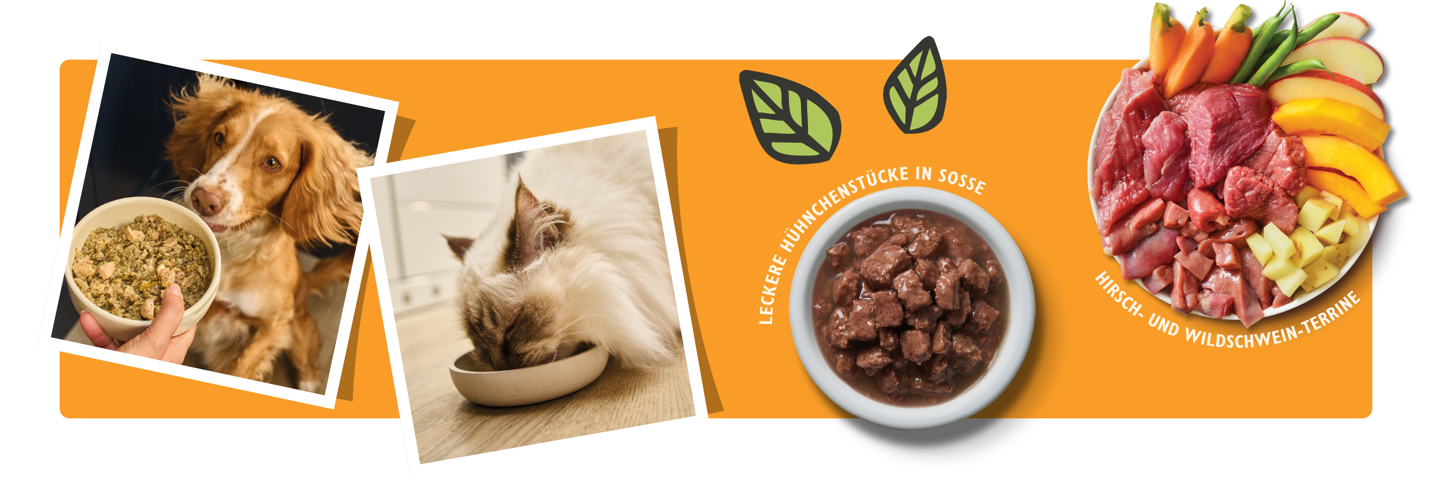 Unsere kompletten und ausgewogenen Rezepturen enthalten alles, was Hund und Katze für eine nahrhafte und ausgewogene Ernährung brauchen. Unsere perfekt zusammengestellten Tiermahlzeiten sind köstliche Leckerbissen, die wir gemeinsam mit Tierärzten und Ernährungsberatern für Haustiere entwickelt haben. Damit du darauf vertrauen kannst, die beste Wahl für deine Lieblinge auf vier Pfoten zu treffen.